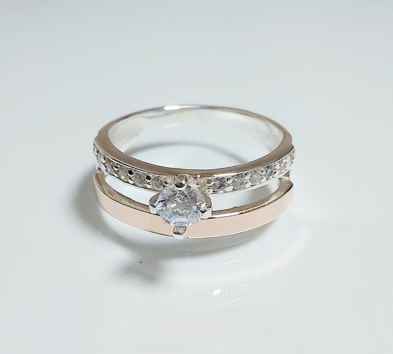 Срібна каблучка з золотими вставками — поєднання срібла 925 проби та золотих пластин 375 проби для щоденного носіння.
